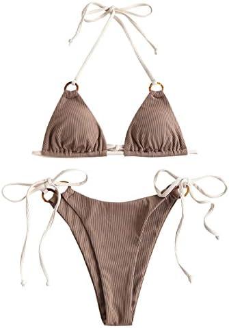 Women’s Two Piece Bikini Sets Sexy Halter Ring Swimsuit Triangle⁢ String Cheeky Bathing​ Suit