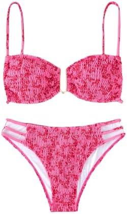 This bikini set showcases a delightful floral print that adds a touch of femininity while the cut-out design enhances the trendy factor. Crafted from comfortable fabric, it features a smocked back and tie closure, ensuring a secure fit suitable for a day at the beach or pool. The adjustable straps provide added customization, allowing for an ideal fit across different body types. Available in multiple sizes, the set is designed to flatter various figures, making it a practical option for sun-soaked fun.