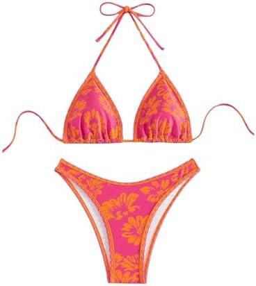 Women’s 2 Piece Bikini Set Floral Print Halter Triangle Swimsuit High Cut Cheeky Bathing Suit