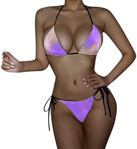 Women’s Two Piece Bikini Sets Sexy Halter Ring Swimsuit Triangle String Cheeky Bathing Suit