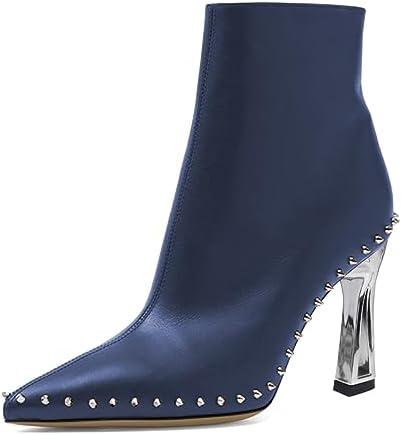 These ankle booties feature a sleek design with a pointed toe and a standout rivets studded detail, making them a fashionable choice for various occasions. Crafted from durable synthetic leather, they ensure longevity and water resistance, providing an appealing option for those looking for both style and practicality. With a heel height of approximately 9 cm (3.54 inches), these shoes elevate your outfit while maintaining comfort for hours of wear. The side zipper allows for easy on-and-off, making them a convenient choice for busy lifestyles. Whether paired with jeans, skirts, or dresses, they add a chic touch to your ensemble.