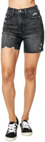 Women’s Ripped High Waisted Denim Shorts Stretchy Frayed Raw Hem Jean Shorts