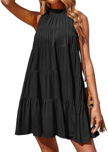 This sundress features a sleek halter neck design complemented by ruffles and a loose swing silhouette, making it an ideal choice for warm summer days. The lightweight and flowy material ensures comfort, allowing air circulation, perfect for beach outings, casual gatherings, or even a garden party. The dress’s versatile style makes it suitable for various occasions, seamlessly transitioning from day to night. Additionally, its pleated detail adds a touch of elegance and drama, while offering a flattering fit for different body shapes.