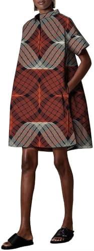 African Print Dresses for Women Vintage Kente Printed Short Sleeves Plus Size Casual Short Dress