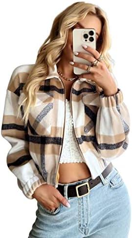 Tanming Womens Cropped Plaid Shacket Aztec Jacket Zip Up Fall Flannel Shirt with Pockets