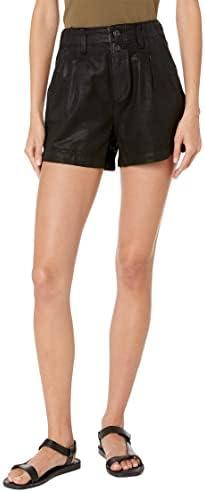 This modern short design showcases a unique blend of style and comfort, featuring front pleating and an exposed double button waistband closure. The black coated denim offers a sleek, polished appearance, making it an excellent choice for both casual and dressy occasions. Pair it with a silk blouse and ankle boots for a sophisticated look, or dress it down with a simple tee and stylish sneakers. With a lightweight construction weighing just 10.23 ounces, it’s the perfect addition to your wardrobe that can easily transition between day and night.