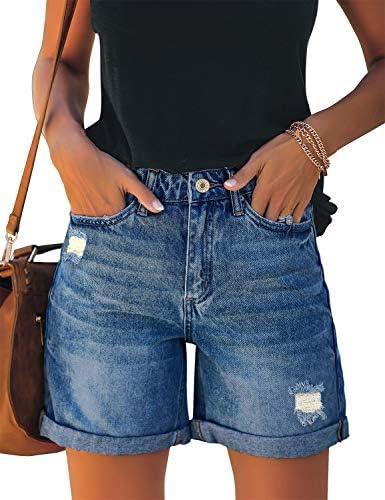 LookbookStore Women’s High Waist Ripped Denim Shorts Rolled Hem Distressed Stretch Jeans