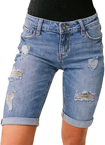 luvamia Women High Waisted Stretch Bermuda Shorts Ripped Rolled Hem Jean Shorts