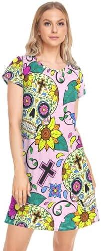 Crafted with a blend of 95% polyester and 5% spandex, these nightgowns provide a luxurious softness against the skin while remaining breathable for ultimate comfort. The short sleeve round neck design ensures a relaxed fit, allowing you to move freely whether you’re lounging at home or catching some Zs. With sizes ranging from S to XXL, you can find the perfect fit to suit your body type. The playful prints and patterns not only brighten your sleepwear collection but also keep you in style, making it an excellent choice for casual daily wear or cozy pajama parties.