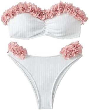 Stylish Strapless Two-Piece Bikini Set with Floral Details