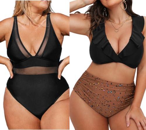 Versatile plus size swimsuit featuring tummy control and a stylish bikini set.