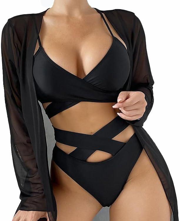 Experience the perfect blend of comfort and style with this chic swimwear ensemble. Featuring a flattering deep V neckline and high waist design, it provides excellent tummy control, ensuring that you feel confident and comfortable at the beach or poolside. The lightweight fabric is designed for the ultimate relaxation, while adjustable straps and wrap chest support enhance versatility and fit. The unique criss-cross hollow out design adds a trendy touch, making this set a standout choice for summer fun. Included with the bikini is a stylish cover-up, offering an additional layer of protection from the sun while maintaining a fashionable look.