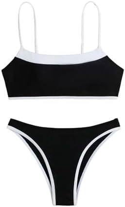 SHENHE Women’s Bikini Set Contrast Binding Two Piece Swimsuit Strap Bathing Suit