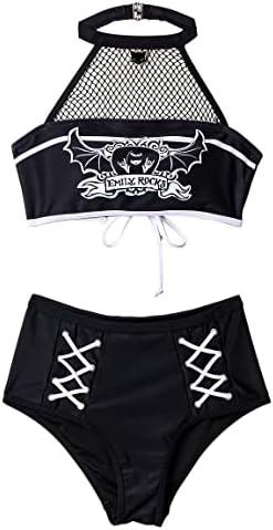 Emily the Strange Women’s Halter Top with Bottom Two Piece Bikini Set Bathing Suit