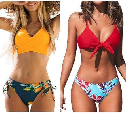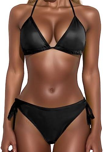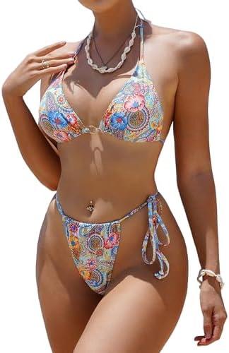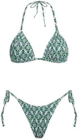 VOLAFA Women’s Triangle Bikini Set String Swimsuit Print Tie Smocked Ruched Two Piece Bathing Suit