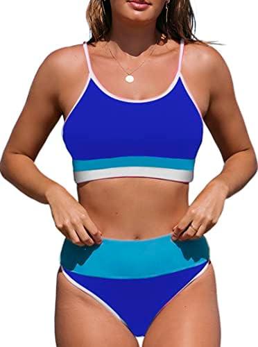 Womens High Waisted Bikini Sets Two Piece Vintage SwimsuitNeck Cheeky Bathing Suits Tummy Control