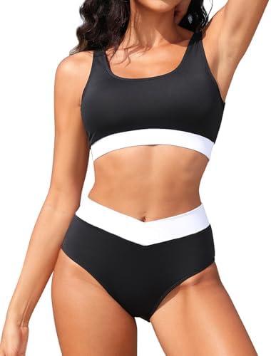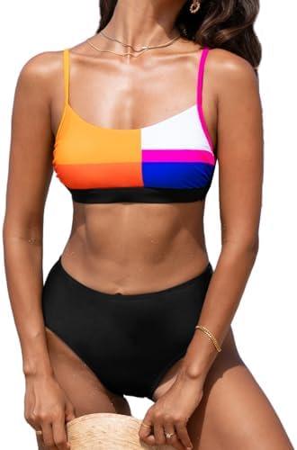 Tempt Me Women Two Piece Scoop Neck Bikini Crop Top Swimsuit Sporty High Waisted Bathing Suit