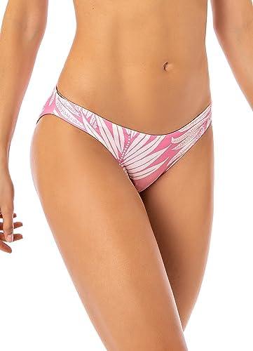 This bikini bottom is a stunning mixture of style and practicality, featuring thin side straps that ensure minimal tan lines while providing classic coverage. The mid-rise design offers both comfort and a flattering fit, making it a versatile addition to your swimwear collection. With its sustainable materials and guaranteed reversible tropical print, you can effortlessly switch your look to match your mood or beach vibe. The dimensions of approximately 5.75 x 5.51 x 1.18 inches and weight of 1.76 ounces make it a lightweight choice for summer outings.