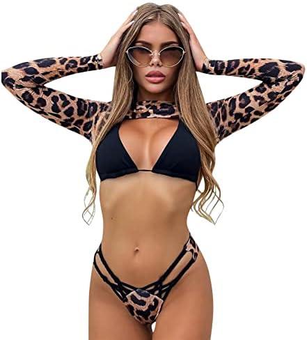 This stunning leopard print swimwear set combines a high cut triangle bikini with a stylish long-sleeve cover-up, making it perfect for various summer activities. The sexy halter design and high waist bikini bottom offer an attractive silhouette while ensuring comfort and flexibility. Constructed from quick-dry material, this swimsuit is ideal for swimming, dancing, or simply lounging by the pool. With multiple sizes available, from S to L, you can find the perfect fit that flatters your body shape.