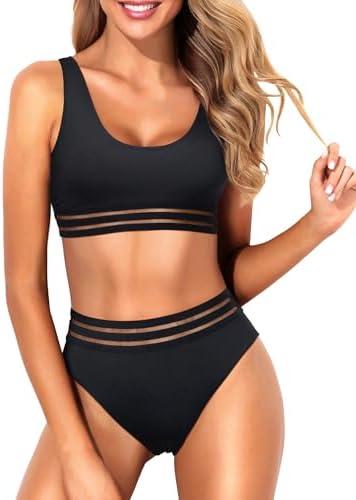 This sporty two-piece swimsuit combines style and functionality, making it an ideal choice for beach or pool days. The high-waisted design is particularly flattering, offering support and coverage that helps conceal the tummy while accentuating your curves. The soft and stretchy material ensures comfort, allowing for easy movement whether you’re swimming or lounging in the sun. Additionally, the mesh scoop neck crop top provides a trendy look, making it suitable for both active and relaxed beach outings. Available in various colors and sizes, this swimwear has garnered positive feedback for its versatility and chic aesthetic.