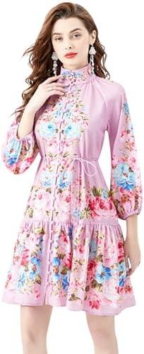 Stylish Casual Floral Print Mini Dress with Lantern Sleeves