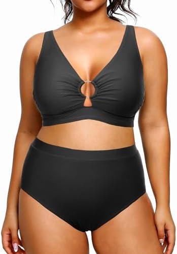Stylish Plus Size High Waisted Bikini with Tummy Control