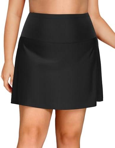 Daci Women Plus Size Tummy Control Swim Skirt Athletic High Waisted Swimsuit Bottom