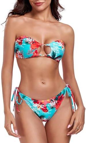 RELLECIGA Women’s Bandeau Bikini Cutout Bathing Swimsuits Brazilian Bikini Sets