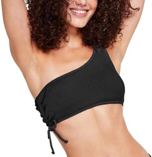 This chic and fashionable bikini top features a unique one-shoulder design that adds a touch of elegance to your swimwear collection. The pullover style, complemented by an asymmetrical neckline, enhances your silhouette while the adjustable side shirring allows for a customized fit, making it perfect for beach outings or pool parties. The allover textured design not only provides a standout appearance but also ensures comfort throughout your day in the sun. With removable cups, you have the option to tailor your level of support, contributing to a versatile wear experience.