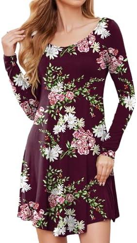 DEARCASE Women’s T Shirt Dress Long Sleeve V-Neck Floral Print Casual Loose Flowy Swing Dresses