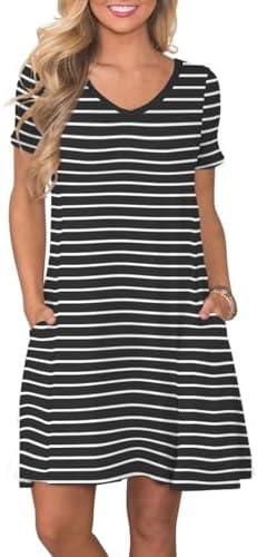 Women’s Casual T Shirt Dress Summer Short ​Sleeve Swing Dresses with Pockets