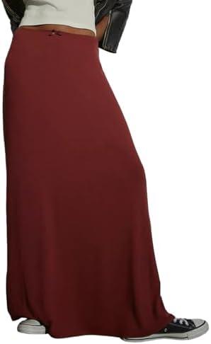 Stylish Knitted High Waist Maxi Skirt with Bow Tie Front