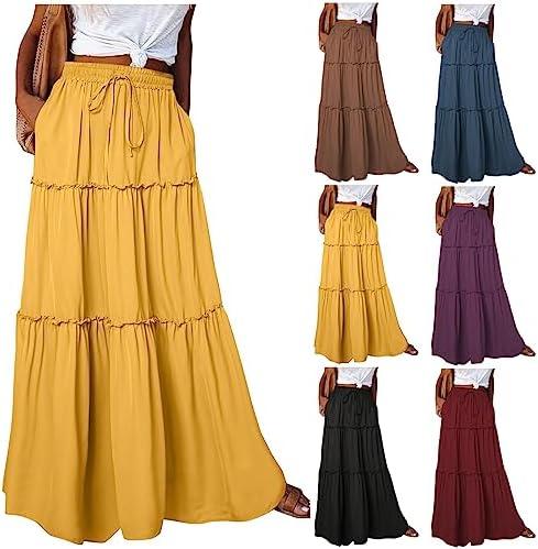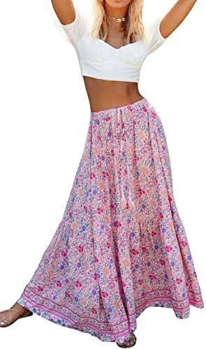R.Vivimos Womens Summer Cotton Vintage Floral Print Boho Casual Ruffled Flowy Maxi Skirt