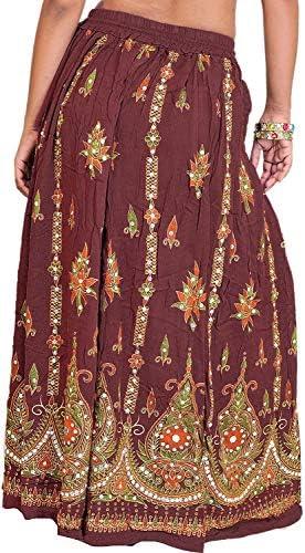 Women’s Tie Dye Yoga Trend Sequined Crinkle Broomstick Gypsy Long Skirt, Brownn, 36 INCHES