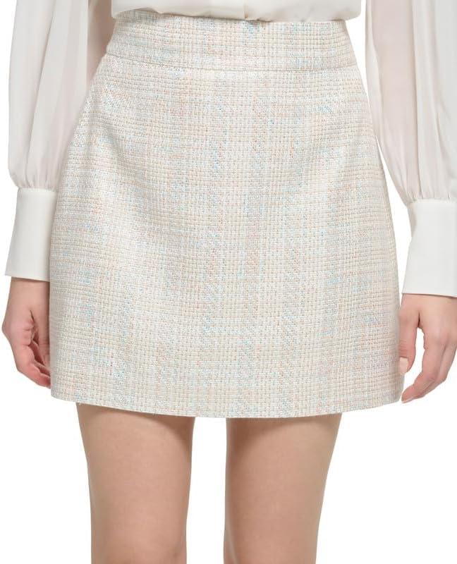 Calvin Klein Women’s X-Fit Rainbow Pastel Tweed Skirt (Oatmeal Multi, 6)