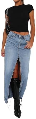 This long denim skirt combines high-waisted design with a trendy front slit, making it an excellent choice for Y2K fashion enthusiasts and streetwear aficionados. The skirt features practical pockets, adding functionality to style. Available in various sizes, it fits well while allowing for ease of movement. The fabric provides a comfortable fit, making it suitable for casual outings or more fashionable events.
