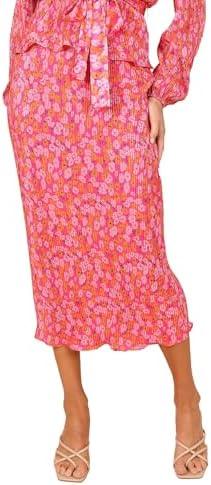 This stylish midi length skirt offers a fantastic combination of comfort and versatility for any wardrobe. The elasticized waistband ensures a flattering fit, making it suitable for a variety of occasions, whether you’re dressing up for a night out or keeping it casual for a day at the park. Crafted from plisse material, it boasts a subtle yet striking satin sheen finish that adds a touch of elegance, allowing you to easily transition from day to night looks. Its lightweight design, at a mere 8.11 ounces, feels comfortable while allowing for breathability.