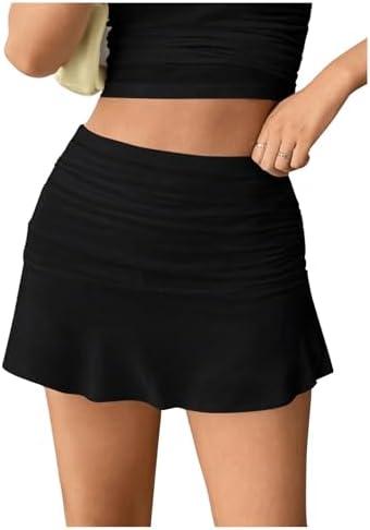 SOLY HUX Women’s Ruched Ruffle Short Skirt High Waisted Bodycon Tennis A Line Mini Skirts