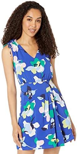 Crafted from 100% polyester, this mini-length dress showcases a V-neckline and wide shoulder straps featuring cinched detailing and a charming tie accent. The pleated detailing on the skirt adds a touch of elegance, while the allover ditsy floral pattern brings a fresh and vibrant feel to the ensemble. Practical aspects include a keyhole accent at the back with a buttoned closure and a zippered closure at the center back for easy wear. Keep in mind that rinsing this attire is hassle-free, as it is machine washable.