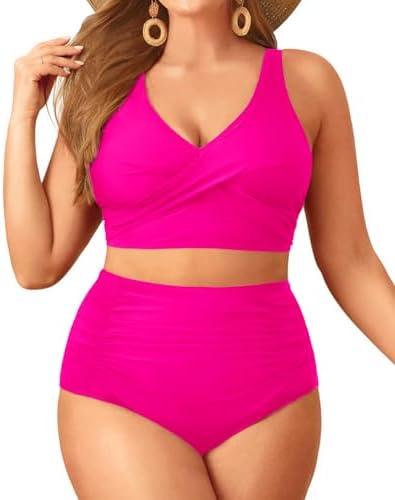 Aqua Eve Women Plus Size Two Piece Swimsuit High Waisted Bikini Set Tummy Control Bathing Suit