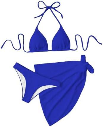 SOLY HUX Bikini Sets for Women Halter Triangle Bathing Suit with Beach Skirt 3 Piece Swimsuit
