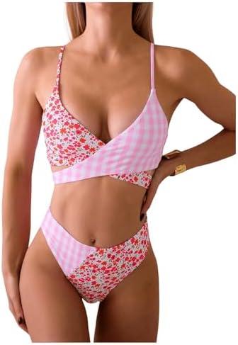 This two-piece bathing suit combines a charming floral print with a chic plaid design, making it a standout choice for beach days or poolside lounging. The crisscross V-neck top features cut-out details that enhance the overall aesthetic and provide a fashionable twist to a traditional bikini. The high-waisted bottoms offer both comfort and a flattering fit, designed to accommodate a range of body types with a waistband that adjusts from 26.0 to 44.1 inches. With its soft fabric and attention-grabbing design, this swimsuit is perfect for those looking to make a stylish statement while enjoying water activities.