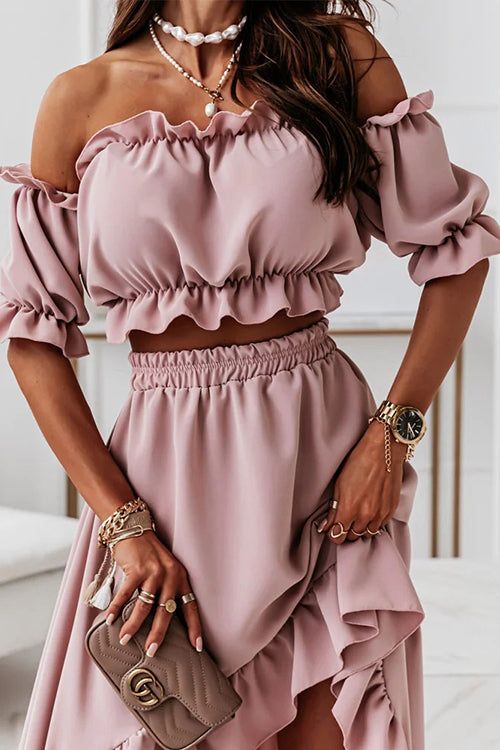 Flounce Off Shoulder Crop Irregularity Skirt Set