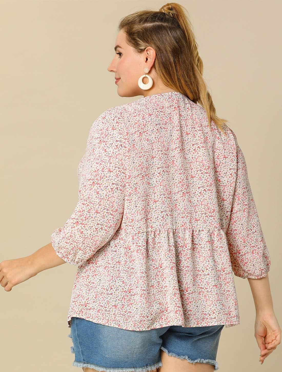 One of the standout qualities of this blouse is its notable versatility. The soft V-neck paired with the flowing babydoll silhouette creates a flattering shape that complements various body types, especially in plus sizes. The 3/4-length lantern sleeves add a unique touch-offering coverage without feeling heavy,making it perfect for both spring and summer. Whether you’re aiming for a casual daytime look or a more polished outfit for an evening out, this top adapts easily. The floral pattern brings a cheerful vibe, but the subtle design ensures it’s never overpowering.