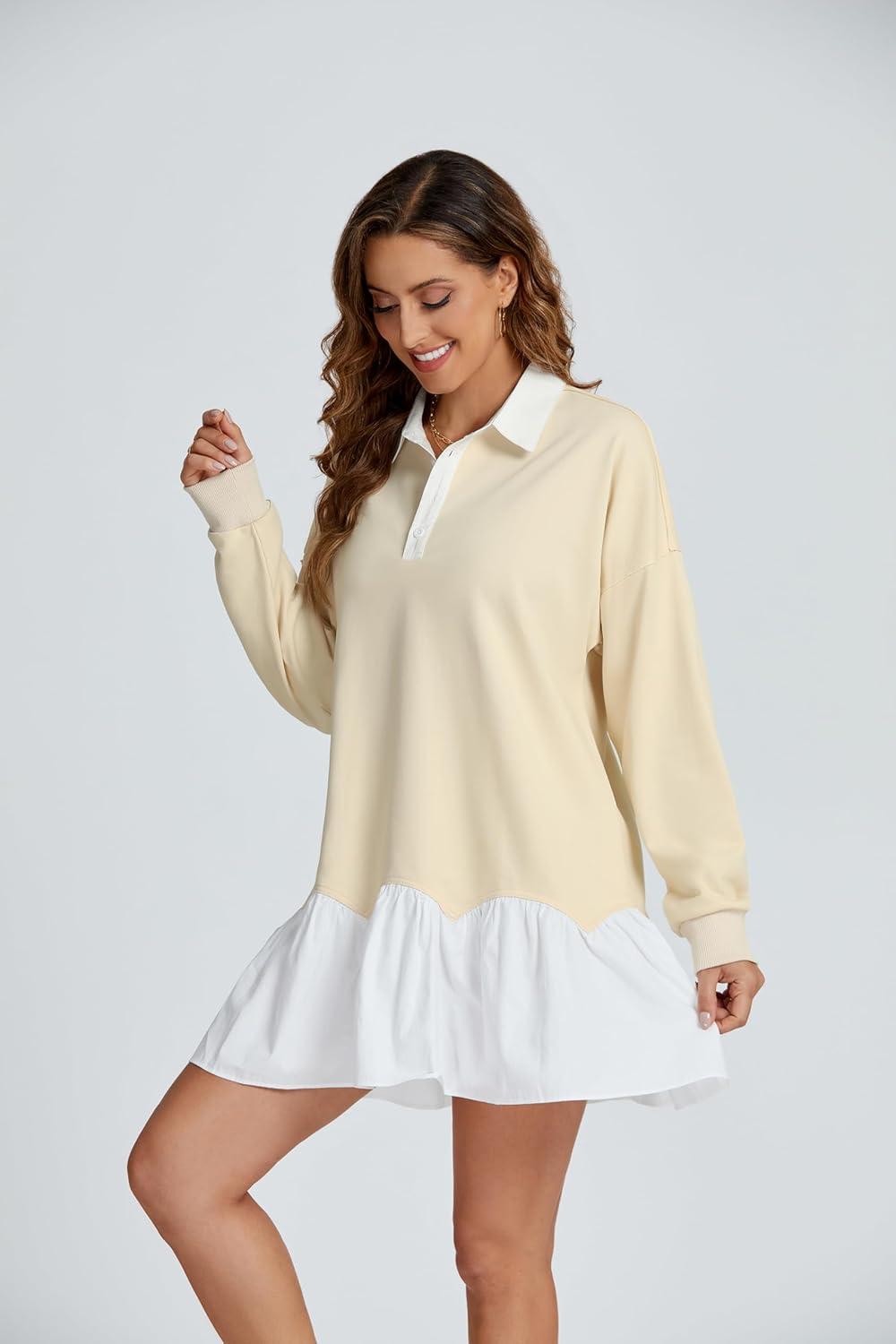 Right out of the box, the cozy oversized fit immediately caught​ our‌ attention. Combining a⁣ classic ‌pullover sweatshirt feel⁤ with⁢ a ‌chic ⁤mini dress silhouette, this piece strikes a perfect balance⁣ between comfort⁣ and style. The patchwork design adds a fresh twist, while the collared button placket and⁣ pleated ruffle hem bring playful ​detail to what could have otherwise been a ‌basic‌ casual dress.The long drop ‍shoulder sleeves ⁢make it ideal for transitional weather, offering warmth without ‍sacrificing movement or breathability.