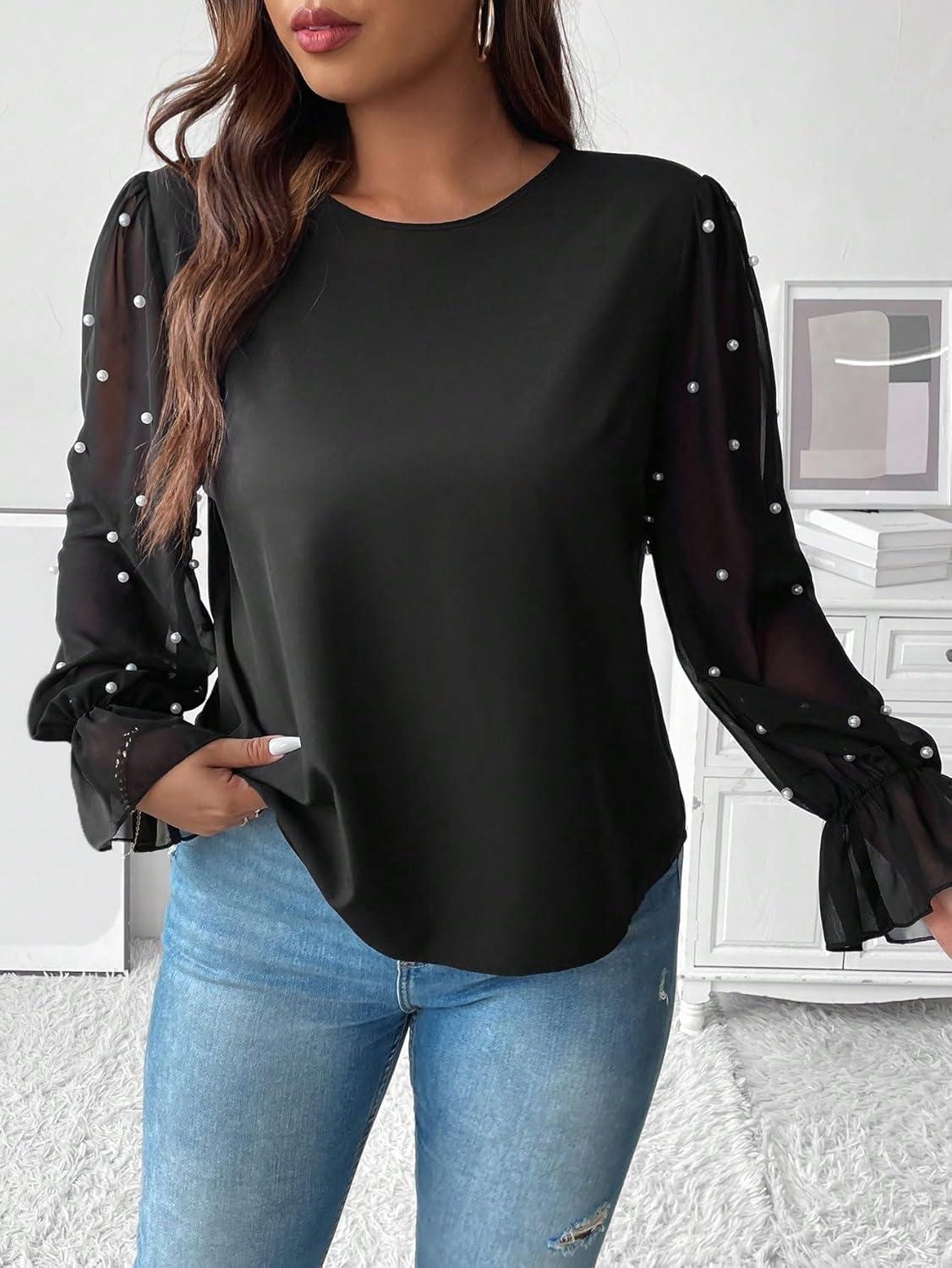 Floerns Women’s Plus Size Pearl Beaded Flare Long Sleeve Elegant Blouse Top on Amazon
