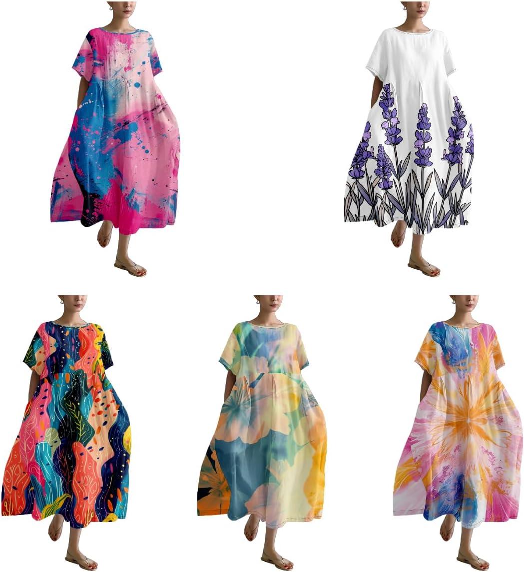 This sundress offers effortless styling potential thanks to its versatile oversized silhouette and charming ruffle hem. Pair it with simple white sneakers and a denim jacket for a casual day out, or elevate the look with statement earrings and strappy sandals for an evening gathering. The crew neck and short sleeves create a balanced canvas, allowing us to experiment with accessories like layered necklaces or wide-brim hats to suit our personal style. The lightweight fabric makes it ideal for warmer days, while the flowing maxi length adds a graceful touch that transitions seamlessly from brunch dates to summer festivals.