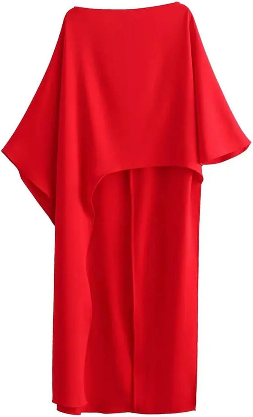 As we dive into the details of this striking Women’s Fashion Casual Loose Red and White Satin Dress with half sleeves and an asymmetric cape style, we find a blend of distinctive charm and comfort. There’s a lot to appreciate, yet a few details to keep in mind.