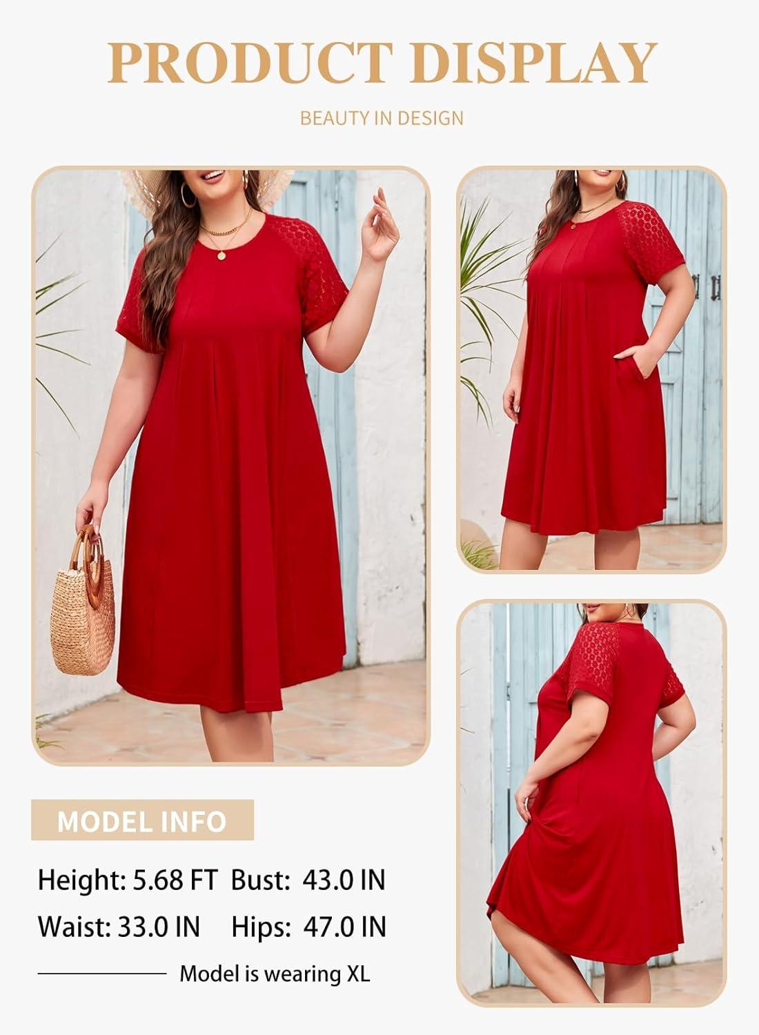 Having spent some time wearing the Eytino Plus Size‌ Short Lace crochet Sleeve Midi Dress in red, we’ve gathered a well-rounded perspective ⁤on ⁣how this flowy, pleated swing A-line dress​ performs for curvy women looking for ⁣both comfort and‌ style. The soft, breathable fabric and delicate ​lace sleeves offer a light, airy feel‌ that kept⁤ us cool during warmer days, while the casual ‍yet elegant crewneck neckline and oversized⁤ pockets add practical charm⁣ to its design. Whether paired with boots for a ​chic look⁤ or sneakers for casual outings,⁢ this dress effortlessly ⁢adapts to various occasions. ‌Throughout our experience, ‌its flattering A-line⁢ cut and loose fit delivered ease​ of movement without sacrificing ‌a ⁢polished silhouette, making it a versatile​ addition to any⁣ plus-size wardrobe.