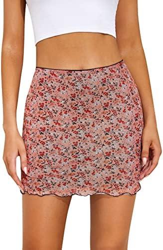 Verdusa Women’s Mesh Ruched Pencil Skirt High Waisted Bodycon Mini Skirts